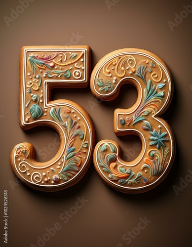 Decorated cookie, number 53, illustration for birthday or anniversary celebration