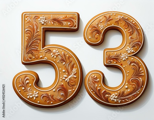 Decorated cookie, number 53, illustration for birthday or anniversary celebration