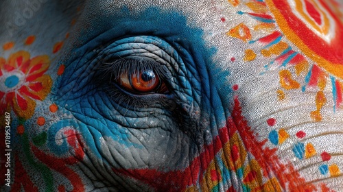 Decorated Elephant Showcasing Vibrant Patterns During a Colorful Indian Festival Celebration