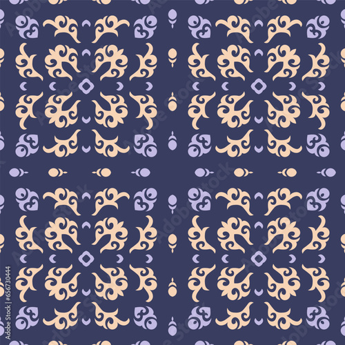 Decorative Asian Folk Seamless Pattern. Ornament of Asian Nomads: Kyrgyz, Kazakhs, Bashkirs, Tatars, Yakut, Mongols. Ethnic Vector Illustration for Paper Products, Textiles.