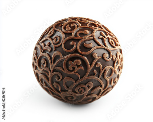 Decorative dark chocolate truffle isolated with ultra-sharp details for luxury branding.