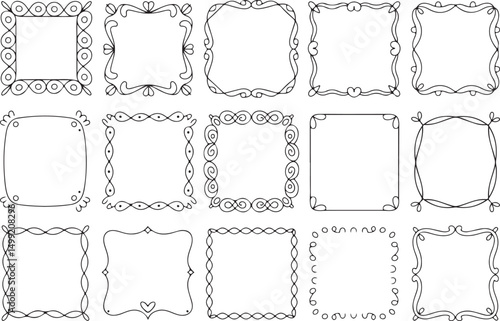 Decorative Doodle Frames and Corners Vector Set - Ornate Borders with Swirls and Hearts 2