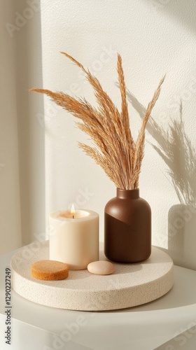 Decorative dried grass arrangement modern home still life minimalistic natural light aesthetic design