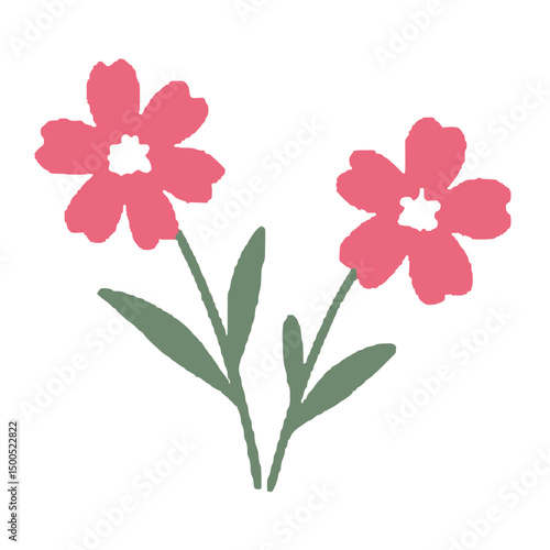 Decorative Floral Clipart of Two Red Cosmos Flowers with Green Leaves