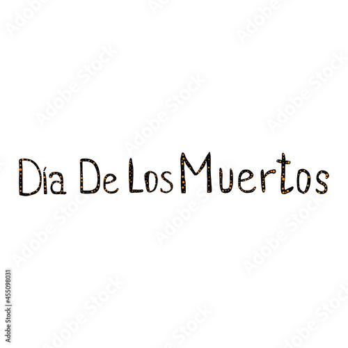 Decorative inscription in the Mexican "Dia de los Muertos" holiday of the dead. Use for the design of postcards, posters. Isolated on white background.