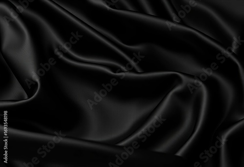 Deep black silk, lustrous sheen, subtle folds, textile, satin