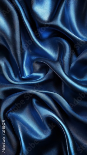 Deep blue satin fabric draped elegantly with soft folds and creases