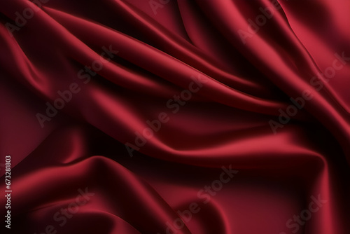 Deep crimson silk background. Beautiful luxuriously soft, graceful folds on smooth, opulent fabric. Anniversary, Christmas, wedding, valentine, celebration concept. Deep crimson luxury background.