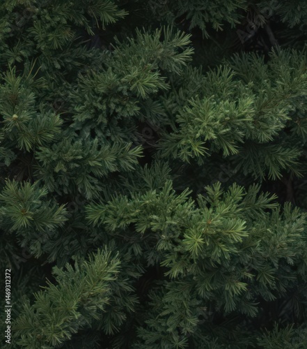 Deep green pine branches, lush needles, natural texture, conifer, backdrop, pattern