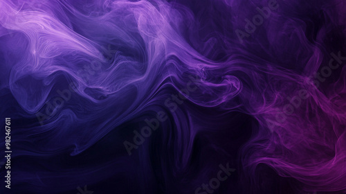Deep purple and indigo smoke swirls dynamically, with bold, flowing shapes creating an intense and mysterious abstract background.