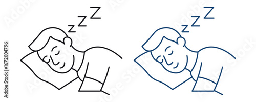 Deep sleep icon set. sleeping on pillow with ZZZ symbol. Health and rest outline and solid symbol. Isolated vector illustration .