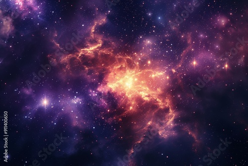 Deep space nebulae with shining stars and comet like streaks of light. Fantasy universe with constellations, colorful Milky Way, and beautiful purple nebulae