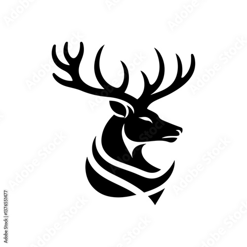 Deer head silhouette vector illustration with antlers and horns in a cartoon style