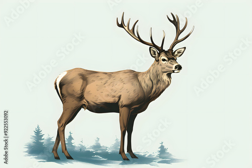 deer illustration classic vintage style woods deer, deer hunting illustration