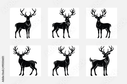 Deer silhouette on white background minimal artwork set for home design
