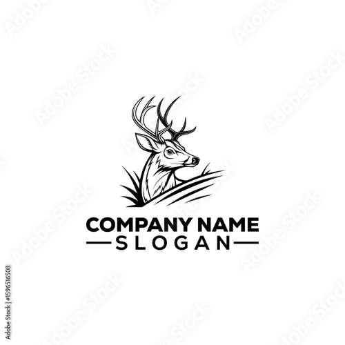 Deer with Antlers in Mountain Landscape Logo