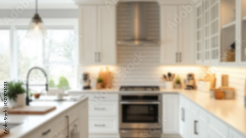 Defocused and Blurr Photo of Modern and Luxury Simple Kitchen Interior Design. AI Generated Images