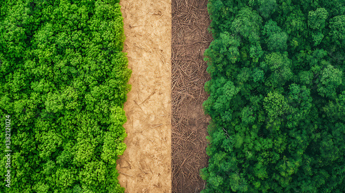Deforestation impact analysis tropical forest aerial view environmental contrast greenery vs. Bare land