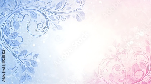 Delicate Blue Pink Floral Swirls Background Design
