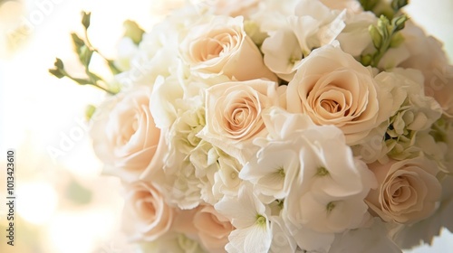 Delicate Bouquet of Peach Roses and White Hydrangeas