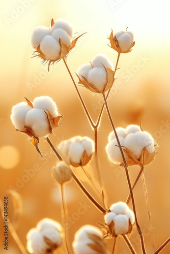 Delicate cotton blooms stand out against a warm, golden backdrop, capturing the essence of agricultural beauty and the harvest season on a sunny day