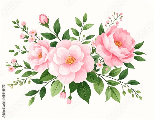 Delicate floral arrangement of pink flowers and greenery