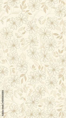 Delicate Floral Pattern: An elegant and serene all-over floral pattern, with intricate line drawings of flowers and leaves, perfect for creating a sense of natural beauty and timeless style.