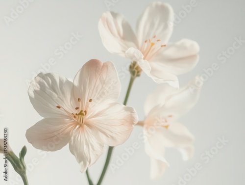 Delicate flowers on a white or white gray background