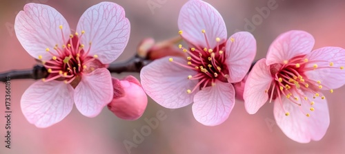 Delicate Light Pink Cherry Blossoms in Bloom Against a Clear Blue Sky, Celebrating Springtime Beauty