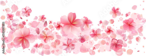 Delicate light pink sakura flowers flow. Wind swirls