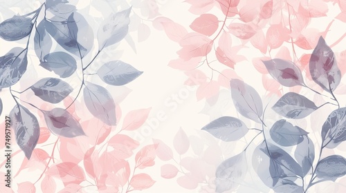 Delicate pastel silhouette of leaves and flowers seamless pattern