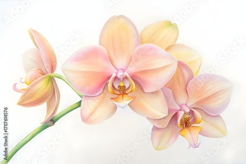 Delicate Peach and Pink Orchid Blossom Branch white background