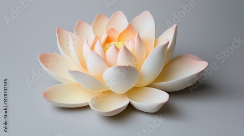 Delicate, peach-and-cream lotus flower, on a neutral backdrop