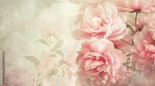 delicate peony flowers blooming on vintage watercolor background floral still life antique illustration