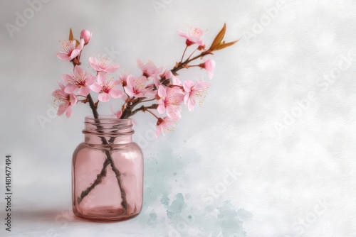 Delicate pink blossoms in a vintage glass jar.