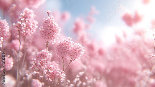 Delicate Pink Flowers Bloom Under a Soft Sky