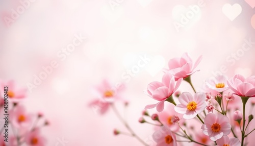 Delicate Pink Flowers Blooming Softly in a Romantic Setting Perfect for Valentine's Day Cards or Wedding Invitations