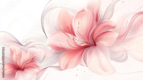 Delicate pink flowers with flowing pastel petals create a serene and elegant design.