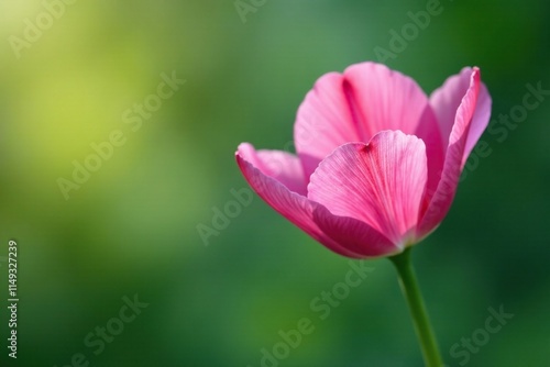 Delicate pink petals unfolding from a green stem, single petal, spring flower