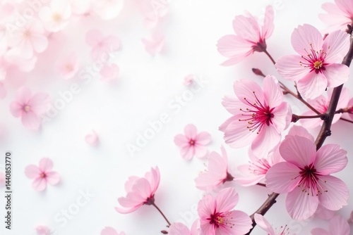 Delicate pink sakura blossoms, scattered on white , white, bloom, sakura pattern