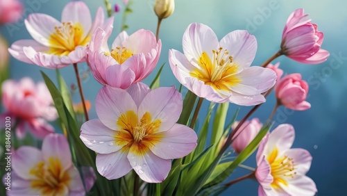 Delicate Pink Tulips with Yellow Centers.