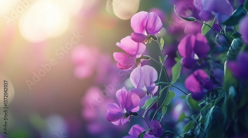 Delicate Purple Flowers Blooming in Soft Evening Light