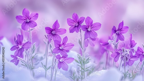 Delicate Purple Flowers Emerging from Snowy Background in Springtime