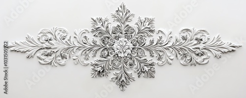 Delicate snowflake featuring elaborate patterns, against a smooth white background, capturing the enchanting beauty of winters artistry