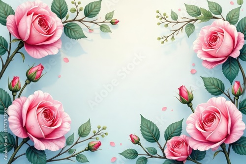 Delicate watercolor roses & buds, climbing vines , botanical, delicate