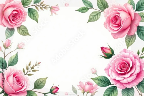 Delicate watercolor roses & leaves, blush pink hues, spring, botanical