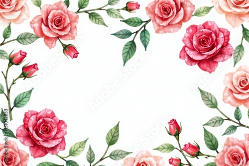 Delicate watercolor roses & leaves, repeat pattern, bloom, vintage