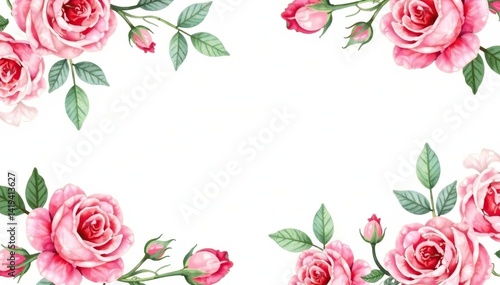 Delicate watercolor roses & leaves, repeat seamlessly , design, red, botanical