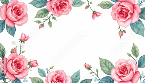Delicate watercolor roses & leaves, repeating pattern , pattern, romantic, green