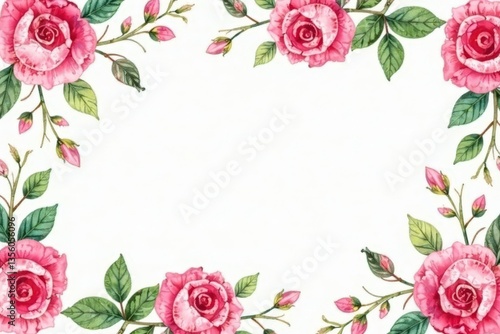 Delicate watercolor roses & leaves, repeating pattern, floral, rose, spring